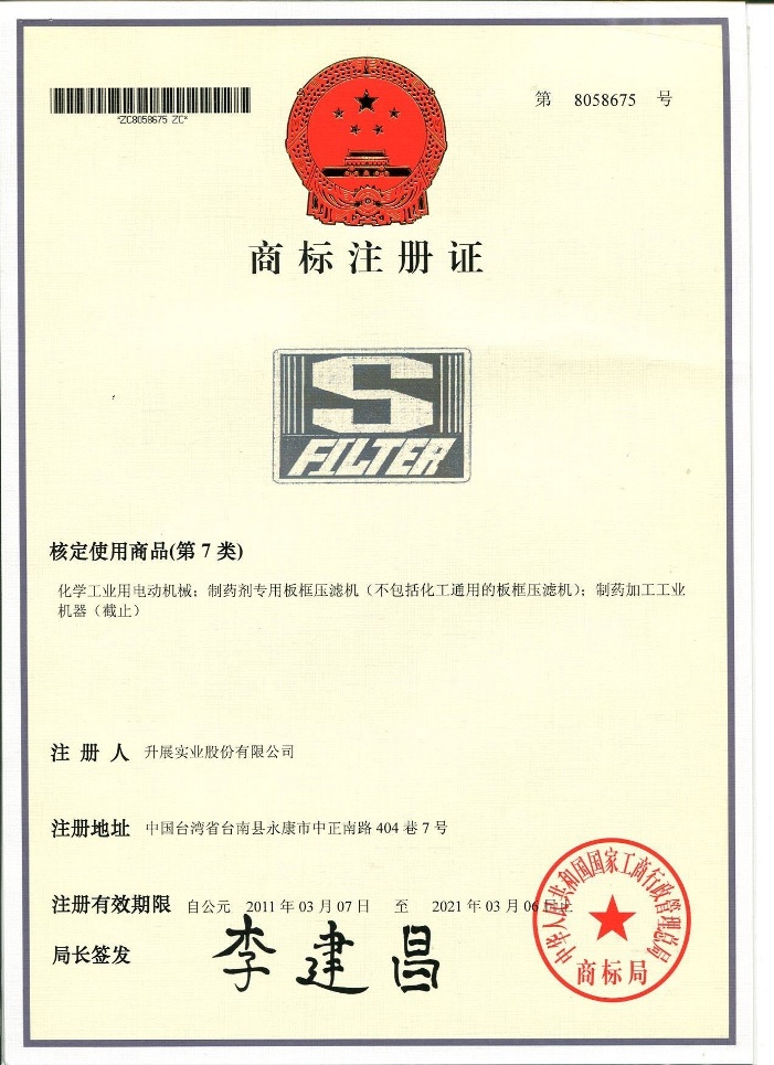 下列各式商標為本公司于大陸取得之商標注冊,僅授權太倉市塑寶環保機械及增城市升展機械公司使用,其余非經我司書面許可而濫用者,本公司將采取法律行動,追索侵權之損害賠償。